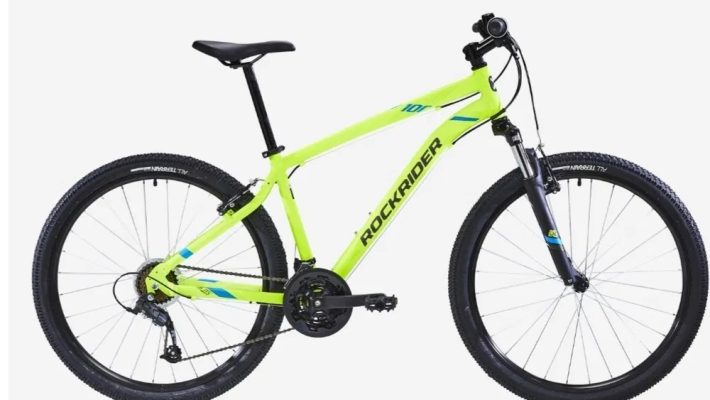 Bicicletă MTB ST 100 27,5″ Galben Fluorescent achiziționată de la Decathlon. Schimbat tija sa cu suspensie SUNTOUR. Am și tija originala.