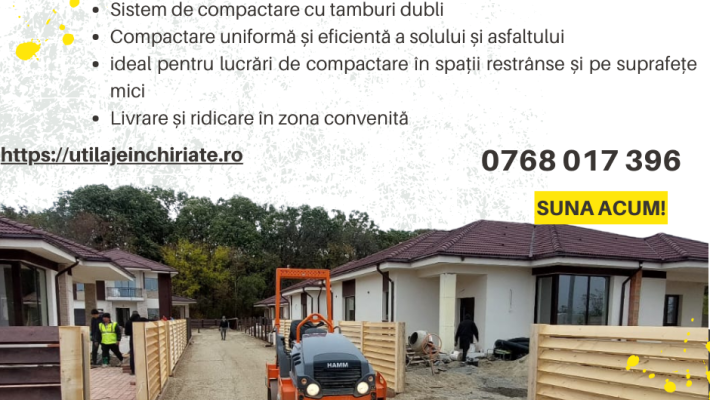 Nu lăsați acest anunț să treacă neobservat! Închiriați acum cilindrul compactor Hamm HD12 și îndepliniți cu succes toate cerințele de compactare ale proiectului dvs. Pentru mai multe informații și disponibilitate, nu ezitați să ne contactați.